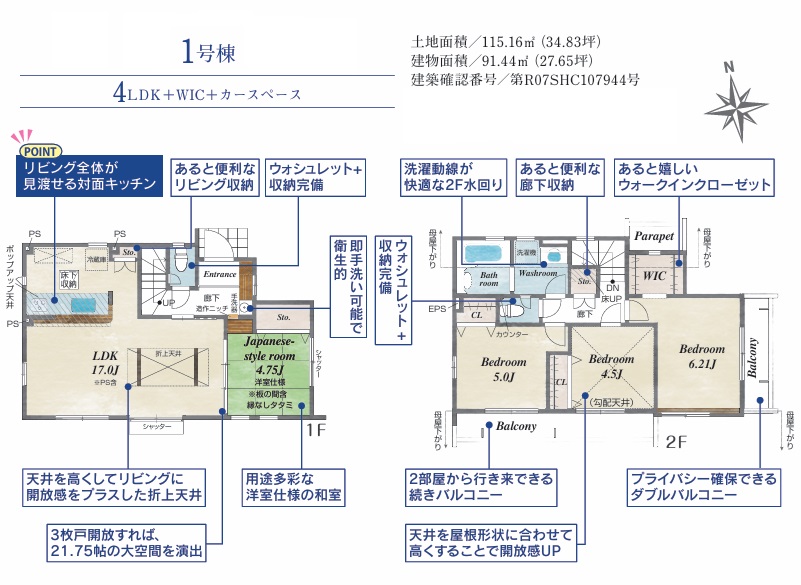 ・WIC、パントリー、食洗機、浴室暖房乾燥機、折上げ天井など