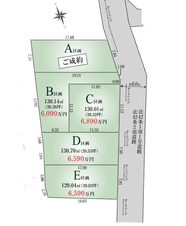 全5区画の建築条件付き売地です。