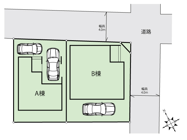 A区は陽当たりの良い整形地、B区は角地ならではの開放感。