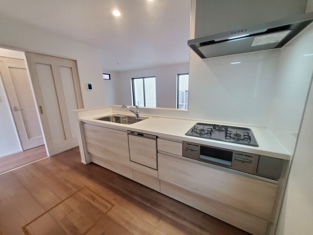 | 設備・条件 | 三口コンロ カウンターキッチン 食器洗い乾燥機 給湯 追い焚き 洗髪洗面化粧台 独立洗面台 浴室乾燥機 温水洗浄便座 床下収納 TVドアホン カードキーシステム 都市ガス 住宅性能評価書 | ||