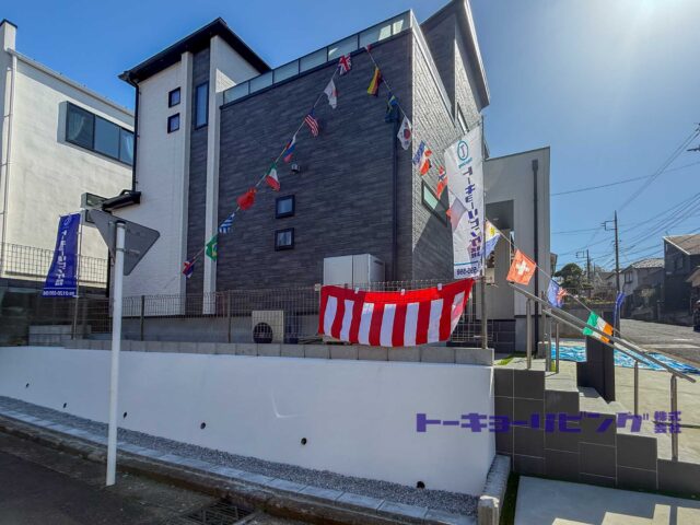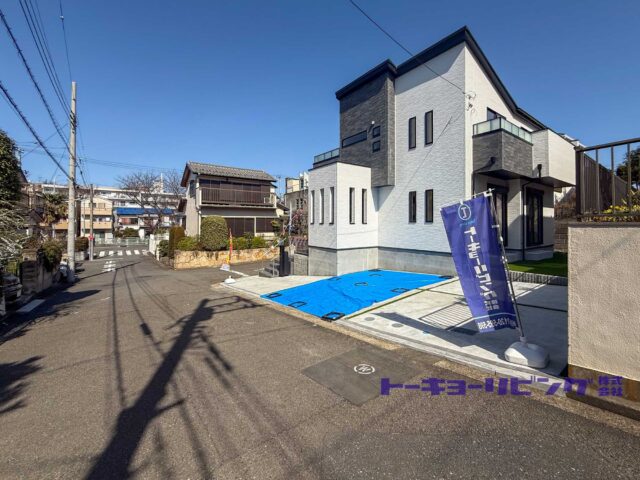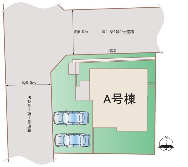 北・西の6m公道に面した角地に立つ、静かで端正な佇まい。