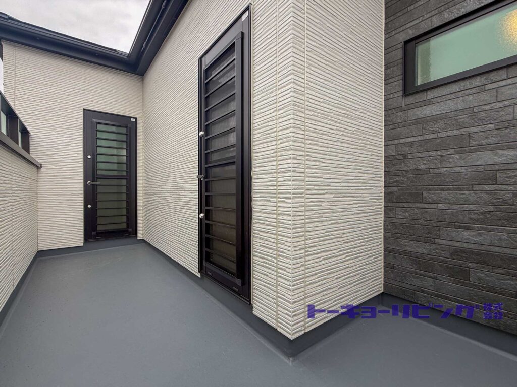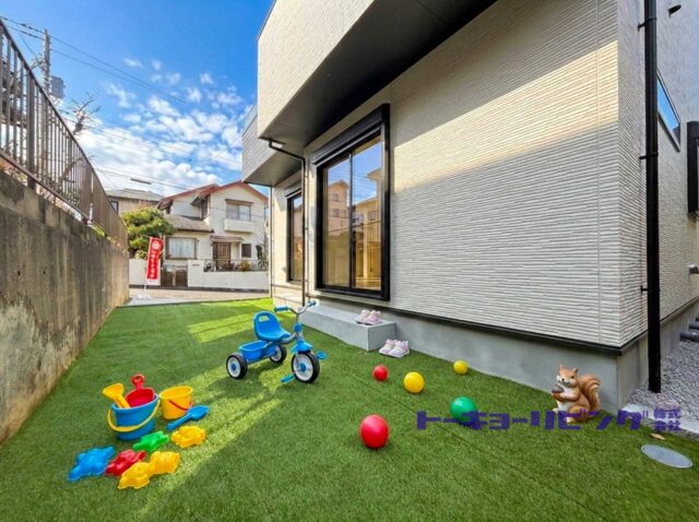 178.47㎡(約53.98坪)というゆとりある敷地には、車2台分のスペースと陽だまりの南庭を備えています。