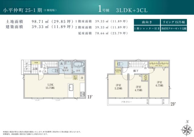 A号棟 敷地面積: 98.71㎡(約25.02坪)
