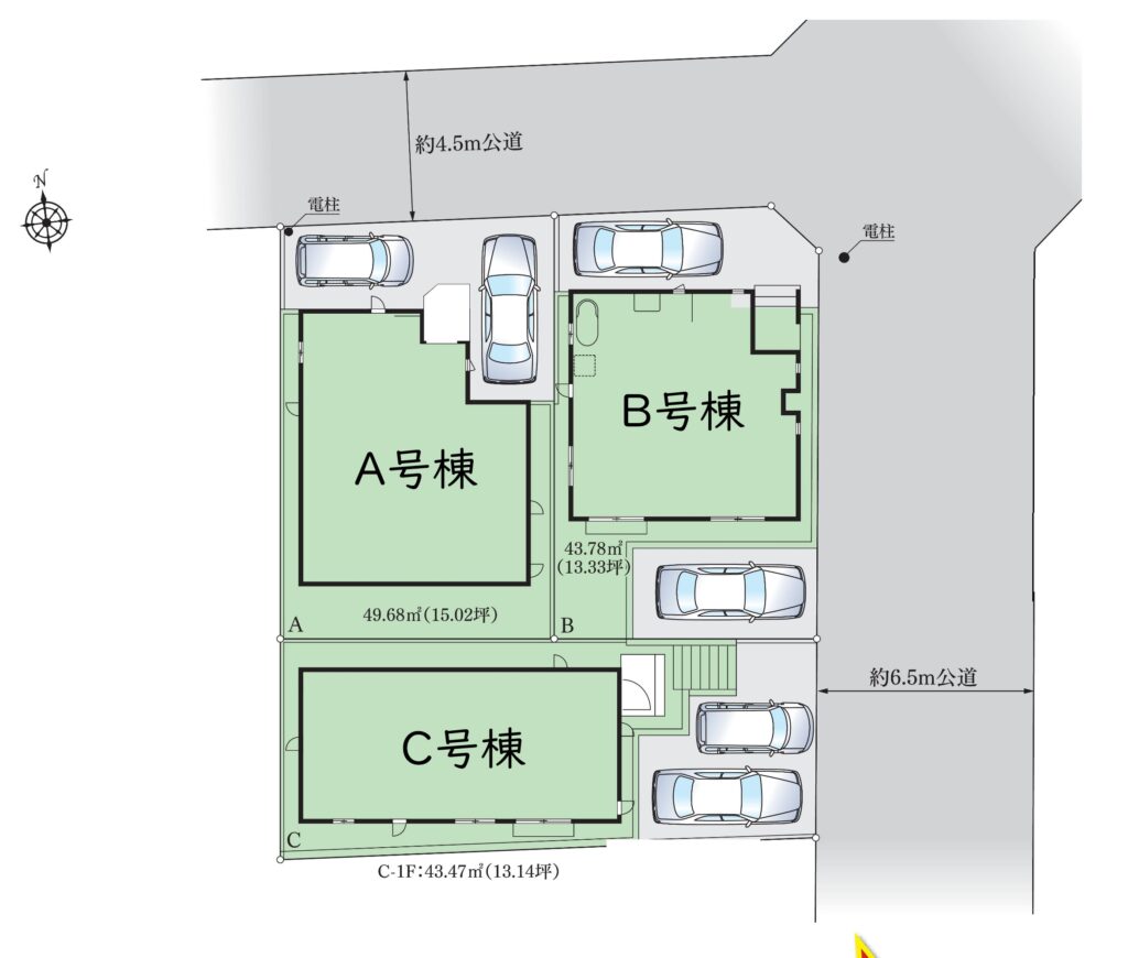 港北区下田町3丁目の閑静な住宅街に位置する、全3棟の新築分譲住宅です。